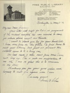1906, May 3, Daisy B. Sabin Burlington Free Public Library Letter