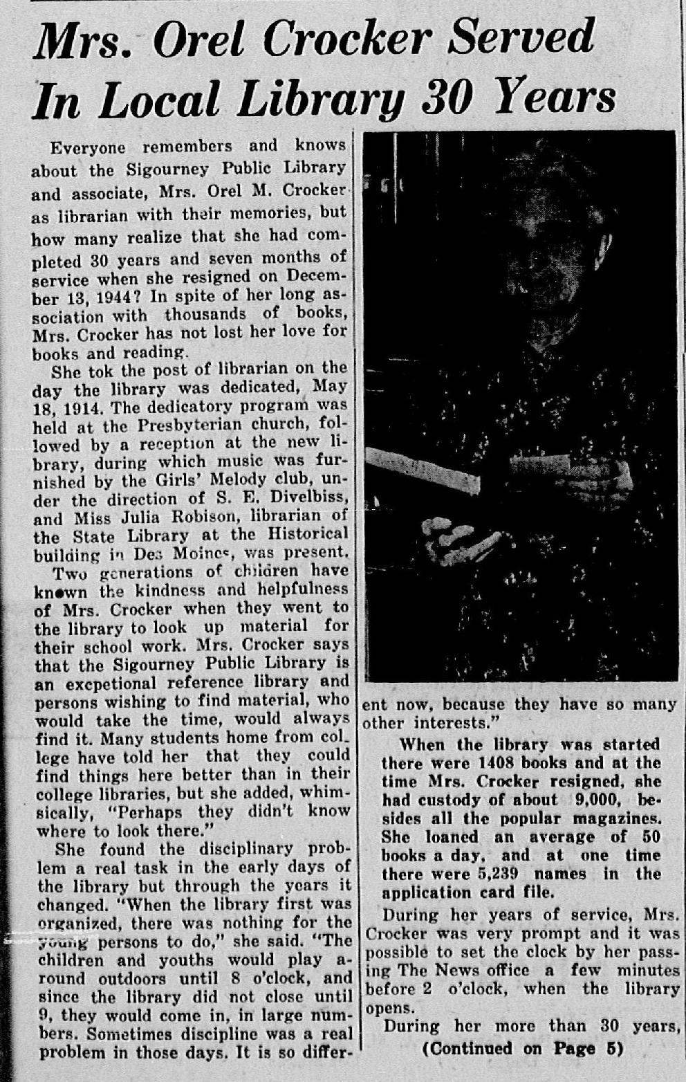 1945, Sep. 27, Sigourney Orel Crocker Obituary Part 1