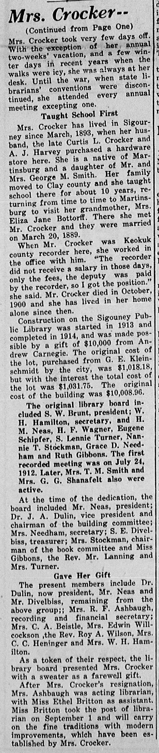 1945, Sep. 27, Sigourney Orel Crocker Obituary Part 2